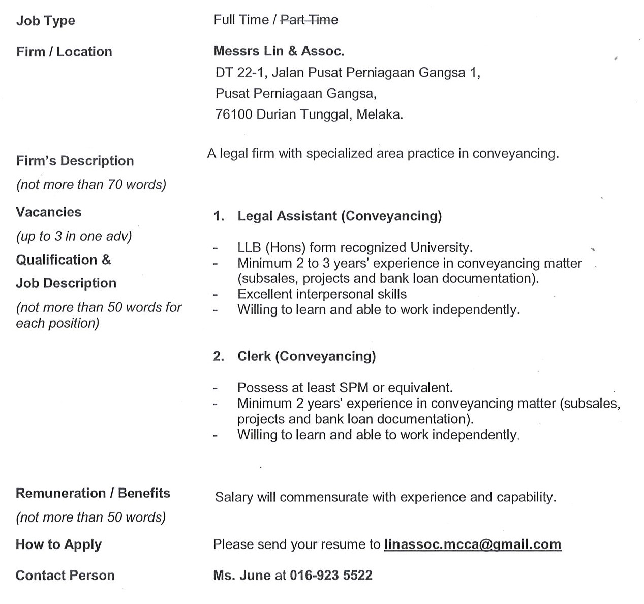 Job Postings: Lin & Assoc