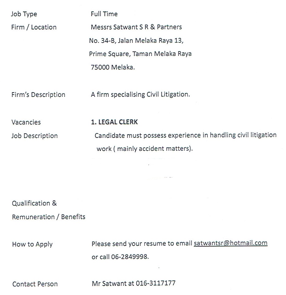 Job Postings: Satwant S R & Partners