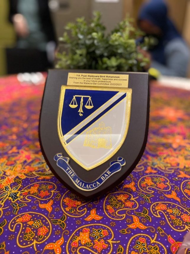 29 April 2022 marked Justice (as she then was) Maidzuara Binti Mohammed’s last day as Judicial Commissioner of the High Court of Malaya and last day of service in the Melaka High Court. The Chairman conveyed our farewells and present a commemorative plaque on behalf of the Malacca Bar and its lawyers. The Chairman’s speech is reproduced below: